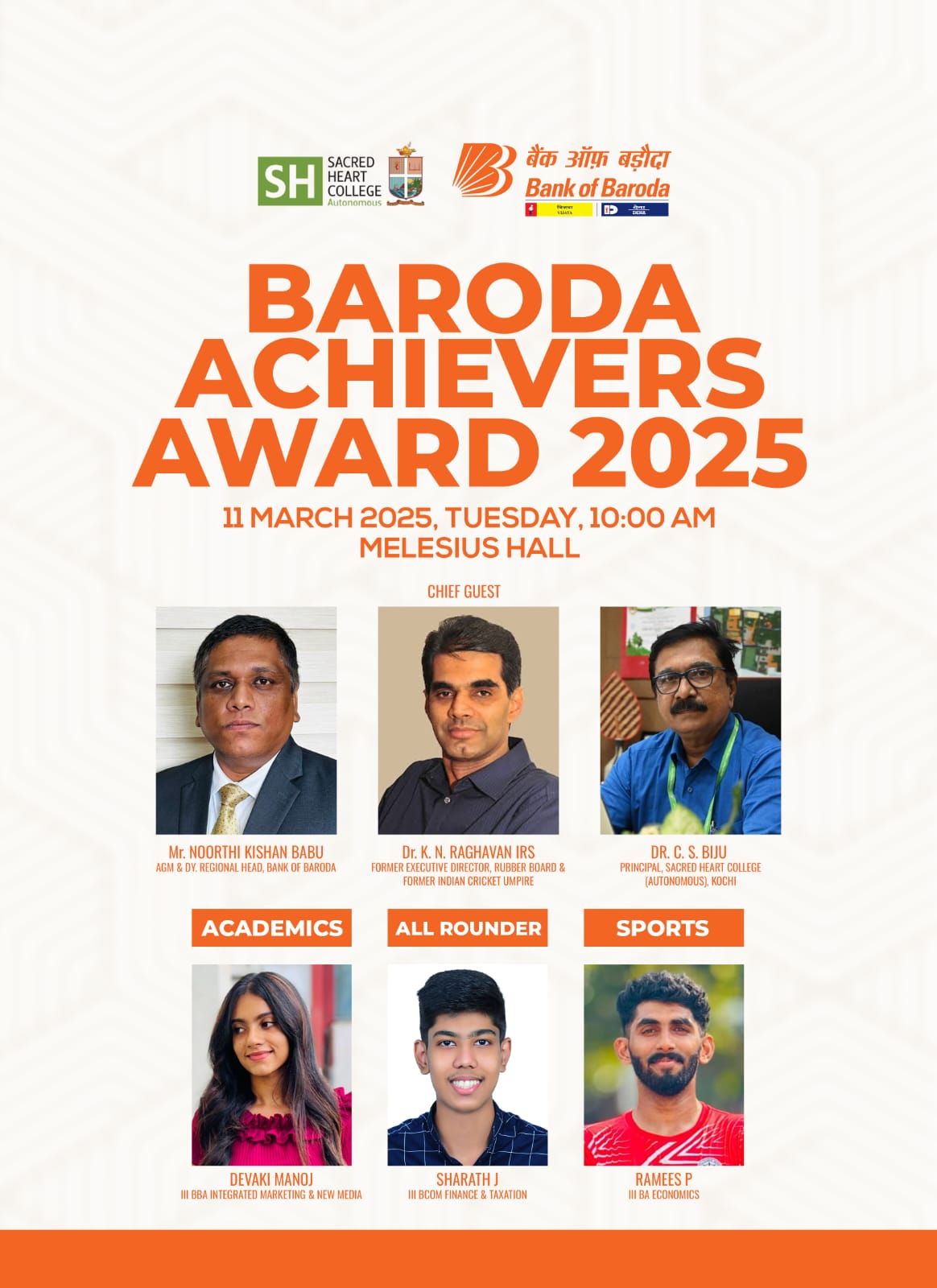 The Baroda Achievers Award 2025 is set to take place on Tuesday, 11th March 2025, at 10:00 AM at Melesius Hall. Join us as we celebrate excellence and recognize outstanding achievements!