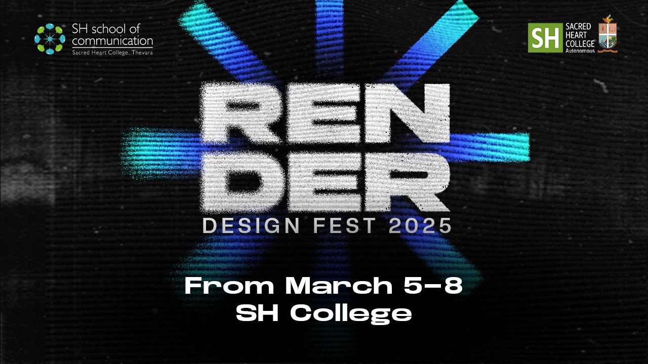 Design department of SH School of Communication, Sacred Heart College, Thevara, is thrilled to invite you to “Render 2025”, our Annual intercollegiate fest, where creativity meets passion! Get ready for an exciting lineup of exhibitions, workshops, and more!