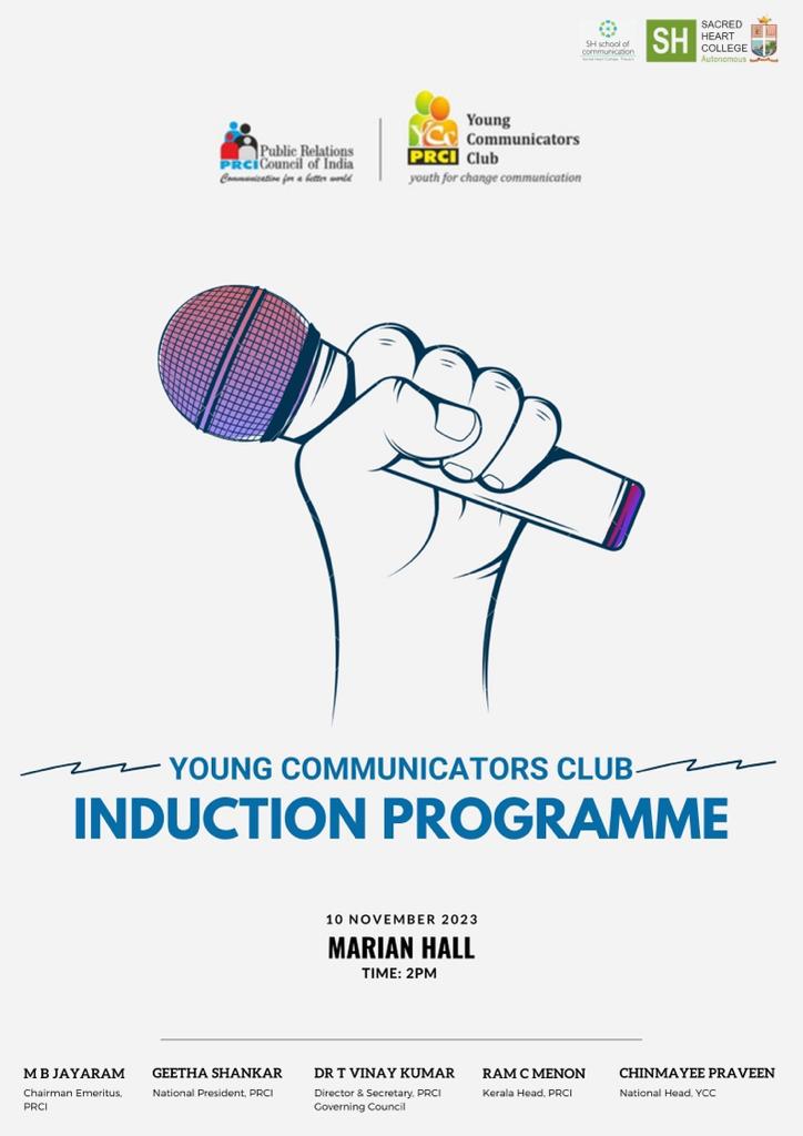 The Sacred Heart College chapter of PRCI’s(Public Relations Council of India) Young Communicators Club is welcoming new members to its fold. The event shall see the election of new office bearers and a welcome note by Mr. Ram C Menon, Kerala Head of PRCI.